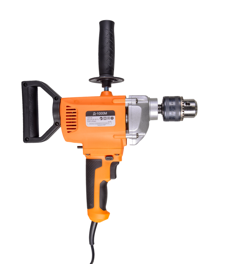 Дрель-миксер Д-1000М Вихрь - электрический инструмент двойного назначения, предназначенный для сверления отверстий в различных конструкционных материалах (дерево, сталь, кирпич, легкий бетон и т. д) (при установке соответствующих сверл), и перемешивание лакокрасочных материалов (при установке соответствующей насадки). Данное устройство сможет одновременно заменить два электроинструмента, что положительно скажется на бюджете покупателя.