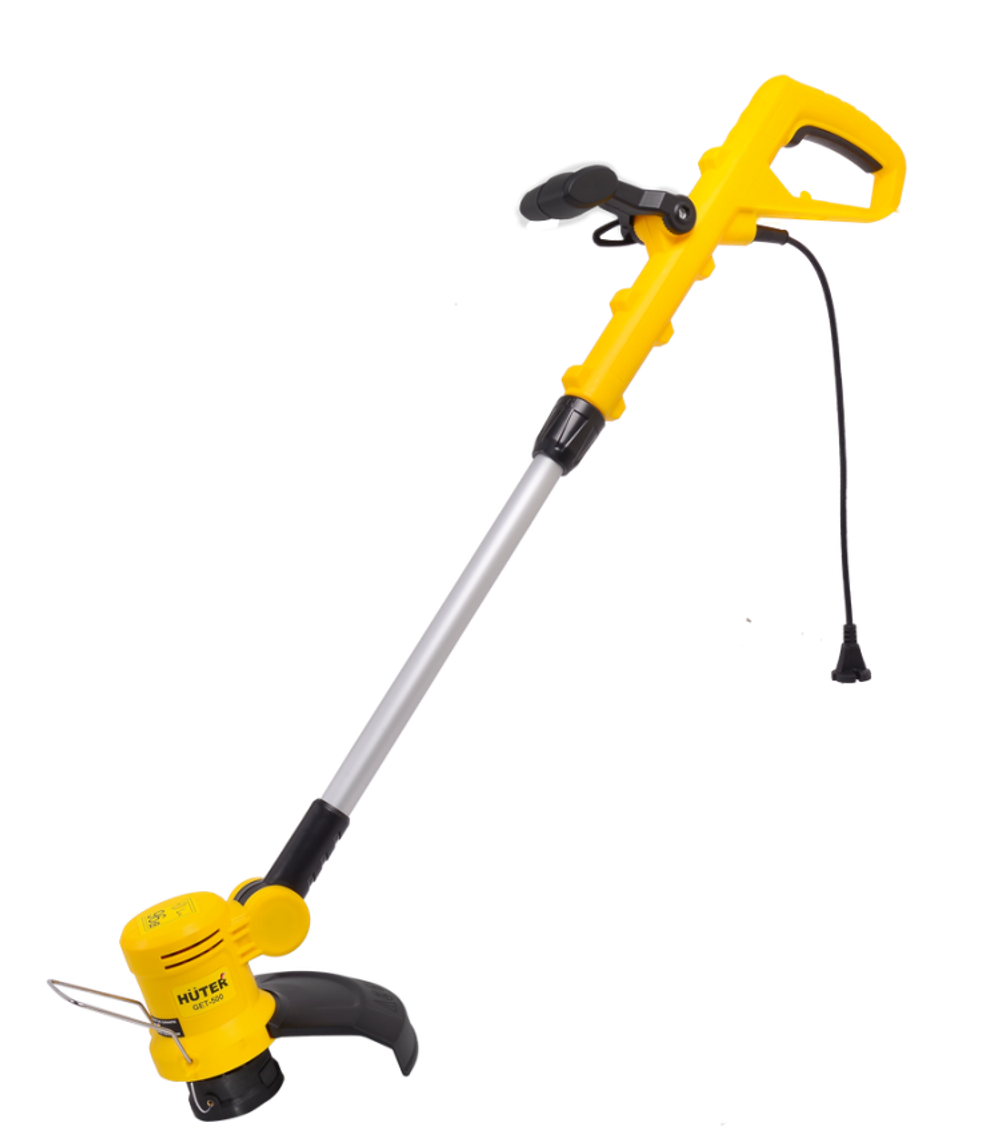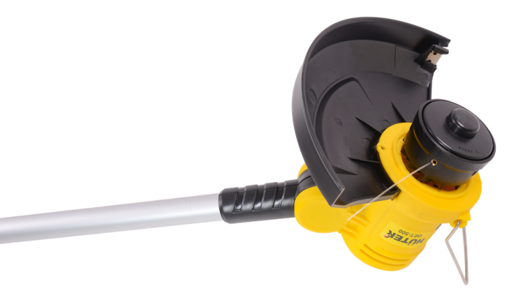 Триммер электрический HUTER GET-500 - надежный инструмент для кошения мягкой молодой травы на небольшой площади. Подойдёт для работы на приусадебном участке или в саду. Ширина обработки - 25 см. На основной рукоятке предусмотрена мягкая накладка для удобного удержания инструмента. Электрический двигатель расположен внизу. Головка с леской – режущая часть триммера, состоит из пластикового корпуса и заправленной внутрь его лески.