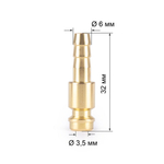 VARTEG FA3020 изготовлен из высококачественной латуни (сплава меди с цинком), что обеспечивает ему прочность и устойчивость к коррозии. Внешний диаметр соединителя составляет 6 мм, что позволяет ему легко вставляться в быстросъемные разъёмы. VARTEG FA3020 - идеальный вариант для тех, кто требует надежного и долгосрочного соединения шлангов в быстросъемных разъёмах.